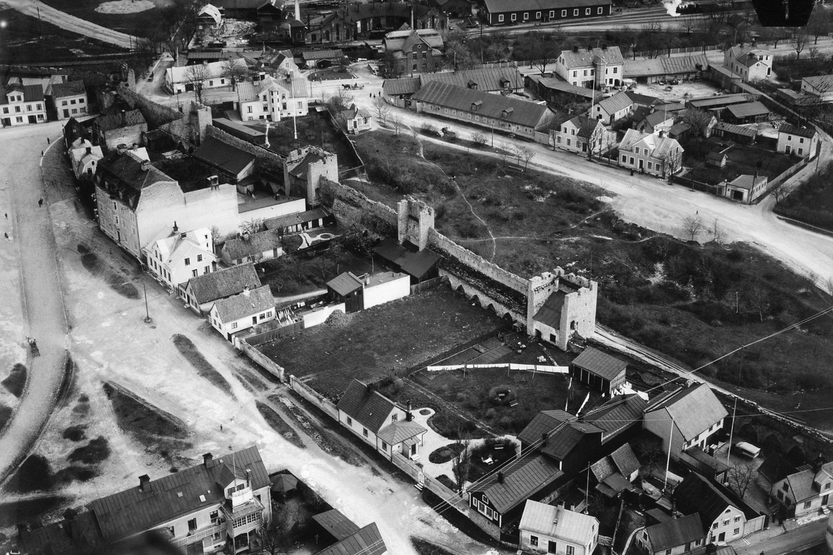 Artilleribacken. Ringmuren. Tågstationen längst upp. Visby.