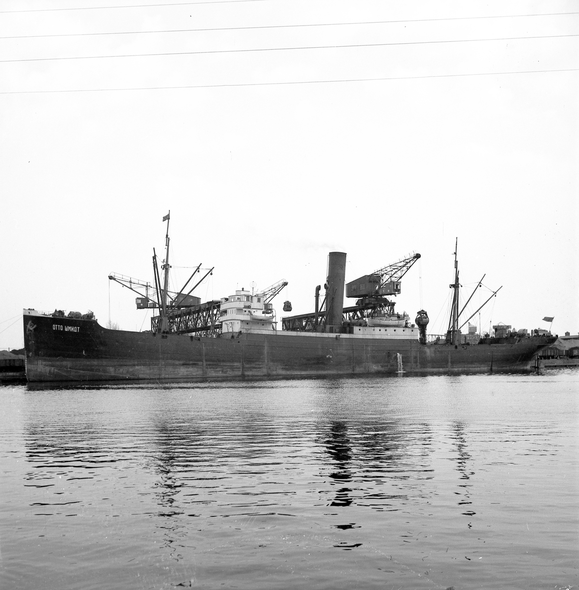 "OTTO SHMIDT" M/S. Rysk båt i hamn. Den 1 maj 1950