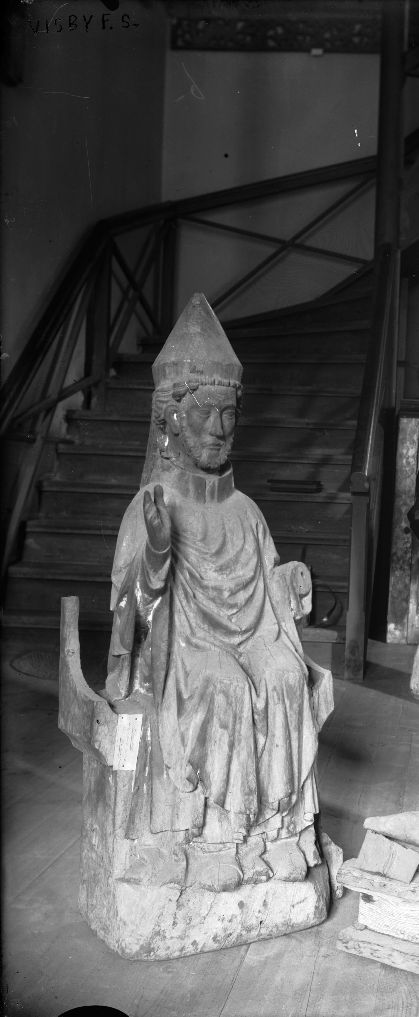 Skulptur av trä framställande sittande påve S:t Klemens?