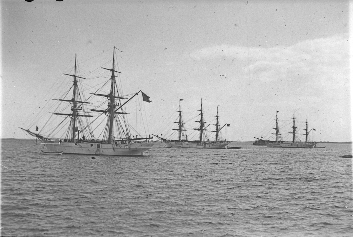 Bilden visar övningsfartyget Jarramas och systerfartyg på redden i Karlskrona.