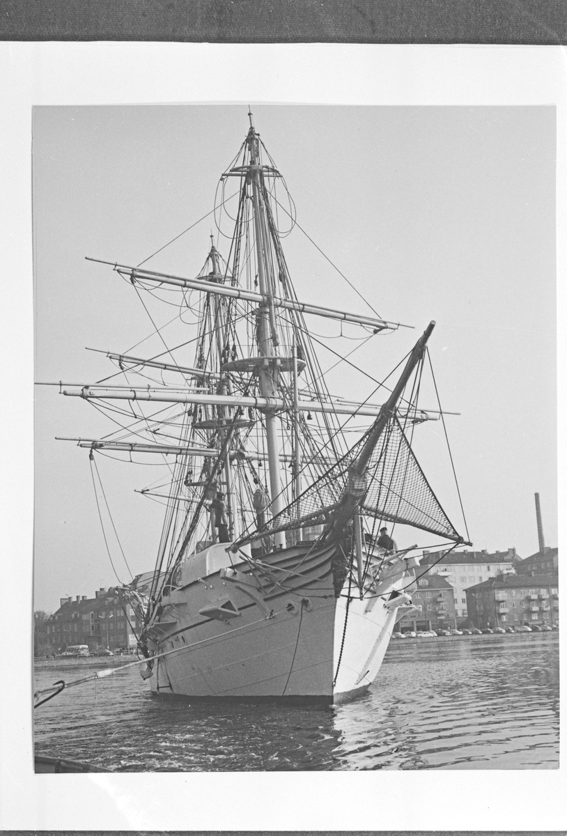 Bilden visar övningsfartyget Jarramas som ligger förtöjd i Karlskrona.