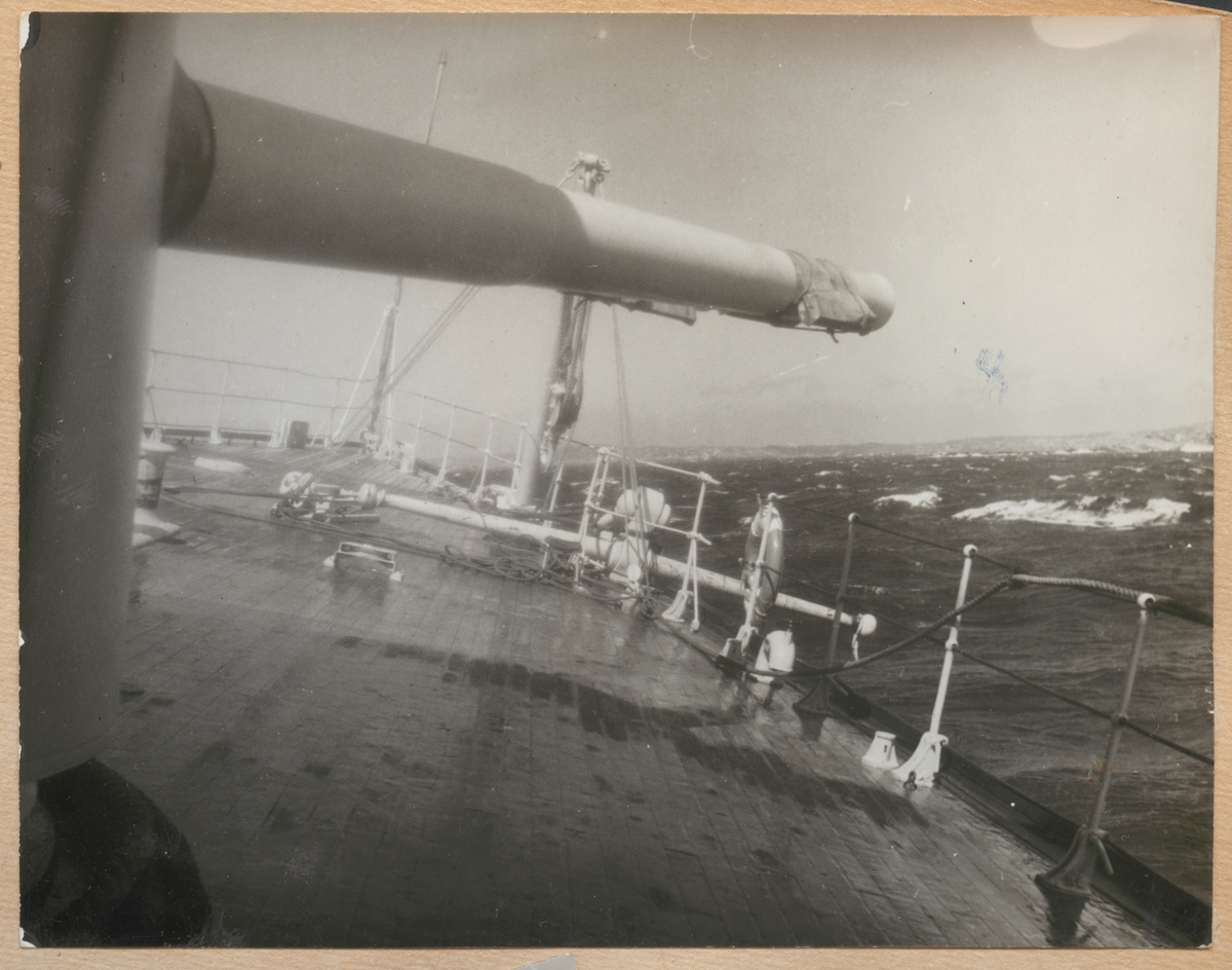 Titel: Vi går ut från Göteborg för konvojövning. Journalister ombord. Sänder radiotelefotobilder till Stockholm. Urpremiärpå dylikt.