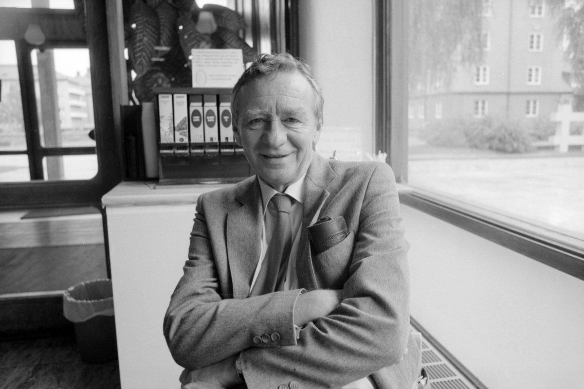 Länsantikvarie Sven E. Noreen i foajén till Östergötlands museum där han tidigare varit chef.