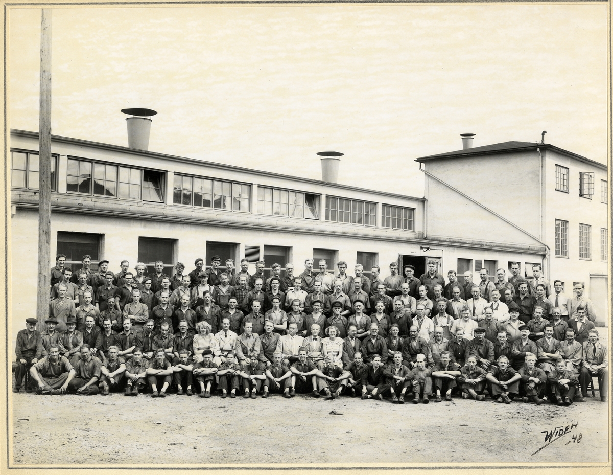 Personal och chefer vid en större verkstad (?) någonstans i Växjö, 1948.