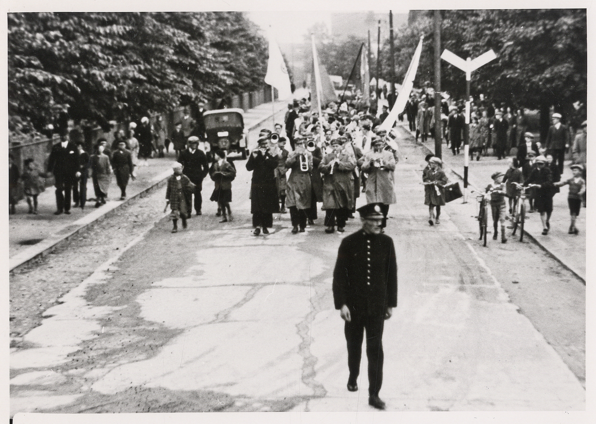 Fjärdingsman Olaus Andersson, Alvesta, i spetsen för 1:a majtåget, ca 1938.