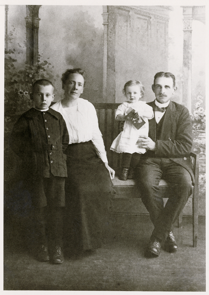 Fjärdingsman Carl Dahl, Hemmesjö, med familj hos fotografen, 1921.