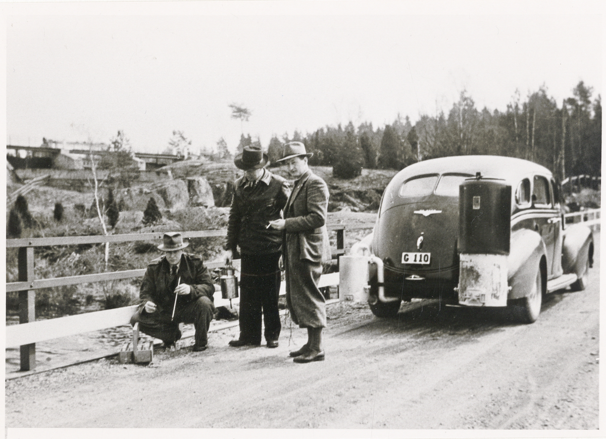 Provtagning av utsläppsvattnet från Lessebro bruk i Ronnebyån, ca 1941.