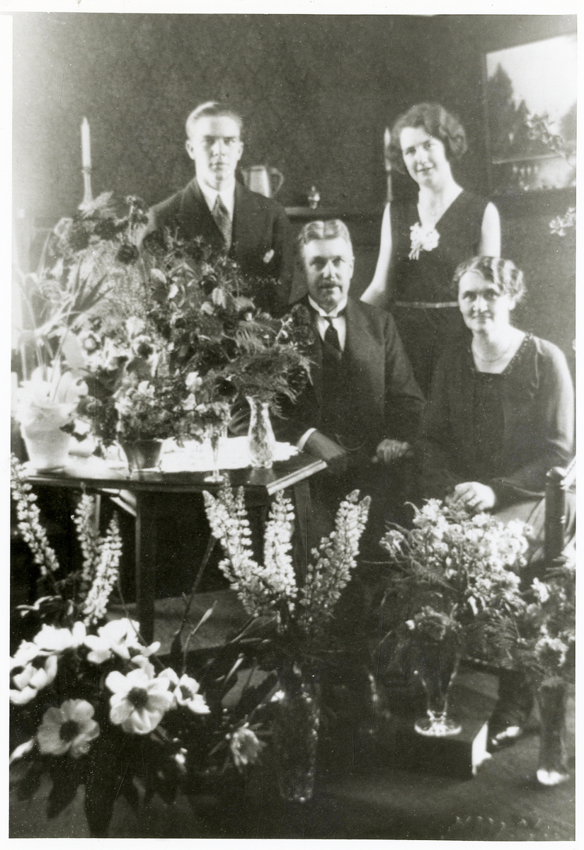 Avfotograferad med familjen i hemmet på Kvarnhagsgatan, trol. på 50-årsdagen 24/6 1931.