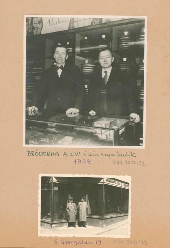 Bröderna Albert och Walfrid Hense utanföri sin nya butik på Södra Storgatan 13.