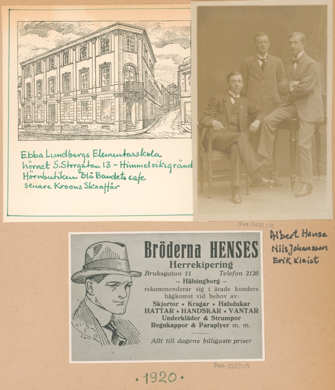 Porträtt av Albert hense, Nils Johansson och Erik Kleist.
