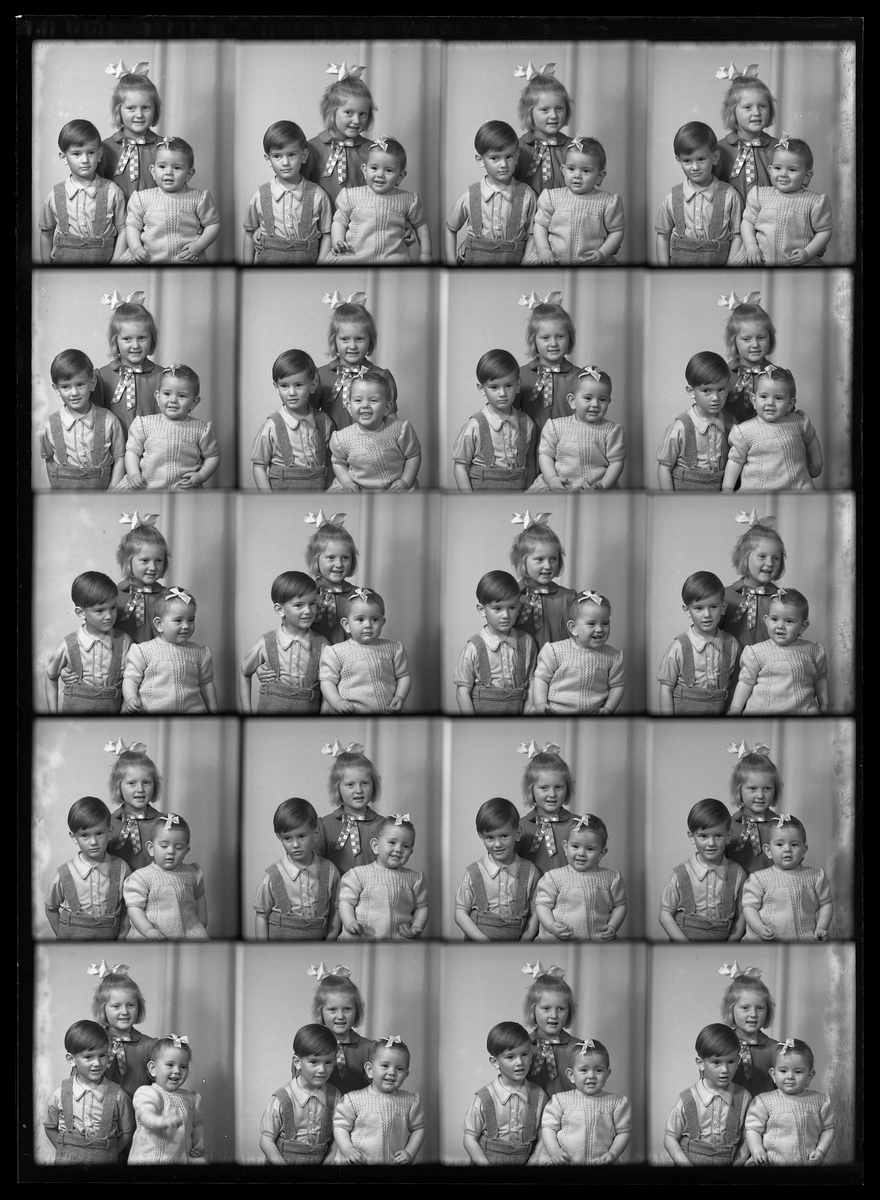 Grupporträtt, tre barn. Chaufför Persson, Mölntorp.