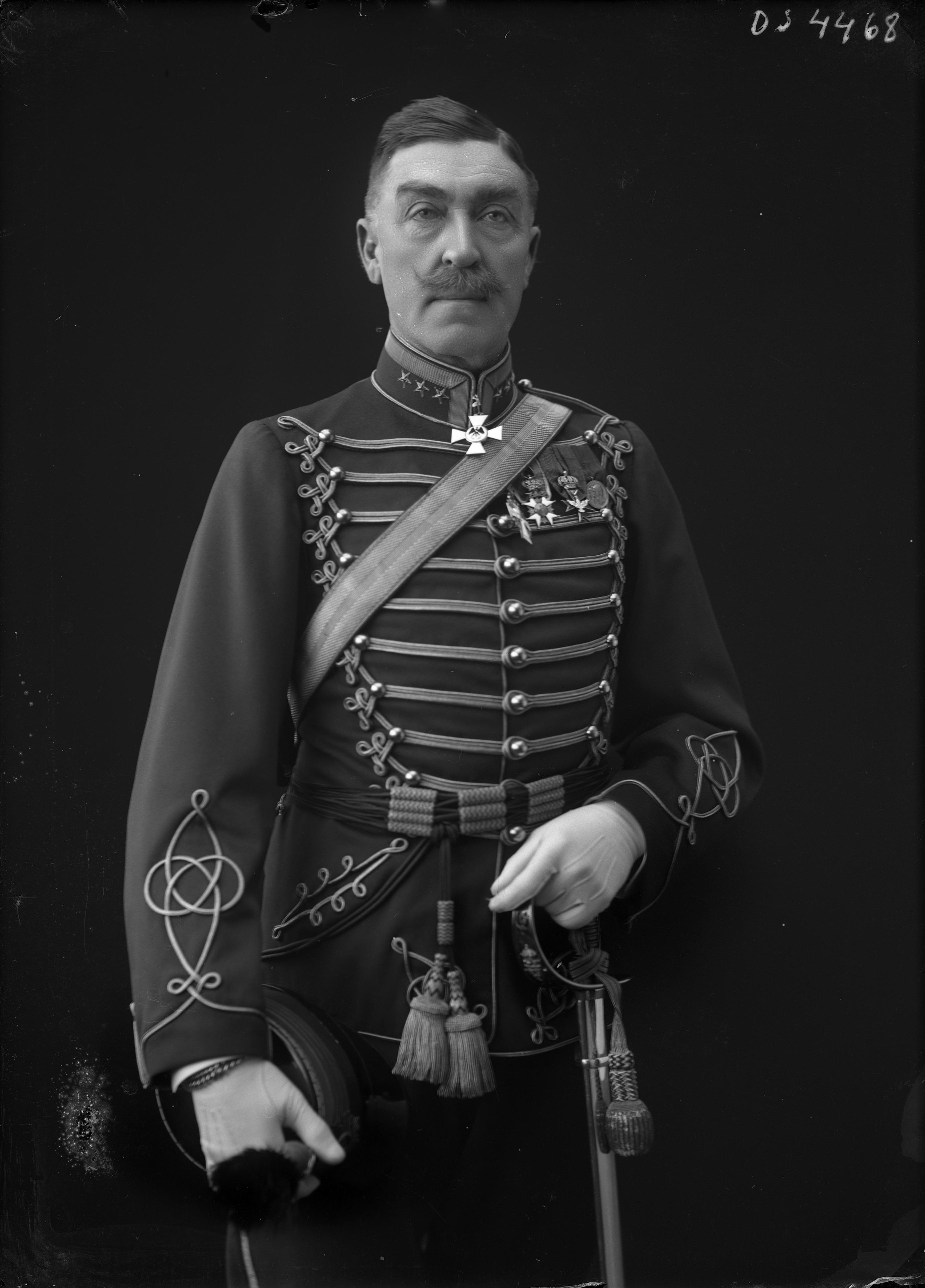 Porträtt i helfigur av överste Bror Munck af Fulkila i militäruniform.