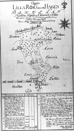 Medföljande text: "Uppmätningskarta, "Hagen 1". År 1699 Ödsmål, SN. Original A. Svensson Grinnerås Ödsmål SN. Kopia Museet".