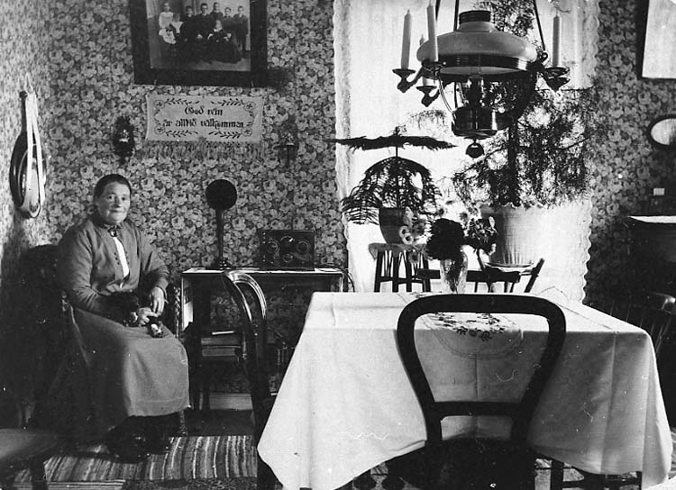 Titel: Medföljande text: "Interiörfoto "Krokstrand" Förvaltarebostad. Omkr. 1920-talet. Repro av foto tillhörigt , S. Larsson. Dals-Rostock".