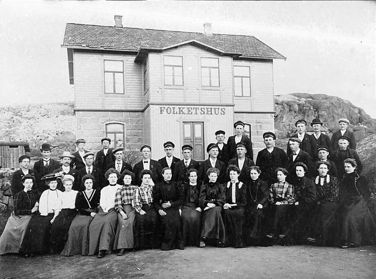 Medföljande text: "Folketshus" Ulebergshamn, Tossene sn. Omkr. 1900-1909. Original foto tillhörande S. Bornström".