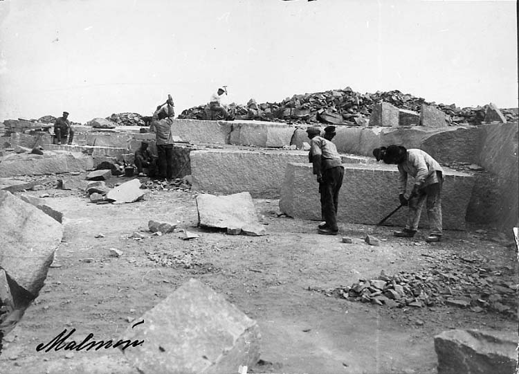 Medföljande text: "Stenbrott på Malmön, Draget. 1890-talet".