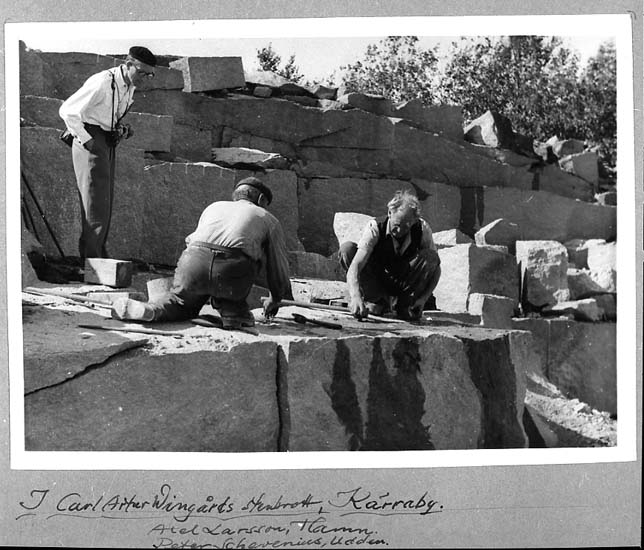 Medföljande text: "I Carl Artur Wingårds Stenbrott Kärraby Axel Larsson, Hamn