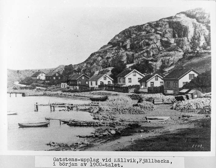 Medföljande text: "Gatstensupplag vid Källvik, Fjällbacka i början av 1900-talet".