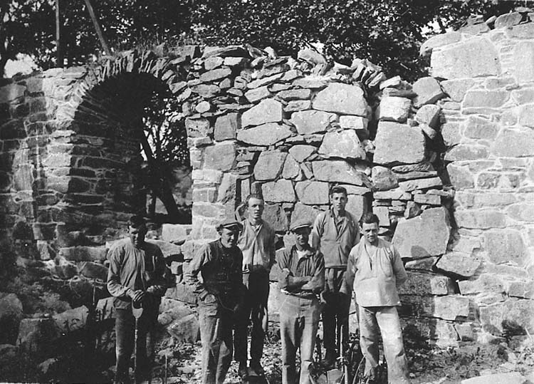 Medföljande text: "Ytterby kyrkoruin. Vid konserveringen 1927. Interiör med NV fönstret".