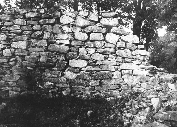 Medföljande text: "Ytterby kyrkoruin. Vid restaureringen 1927. Interiör av NÖ hörnan".