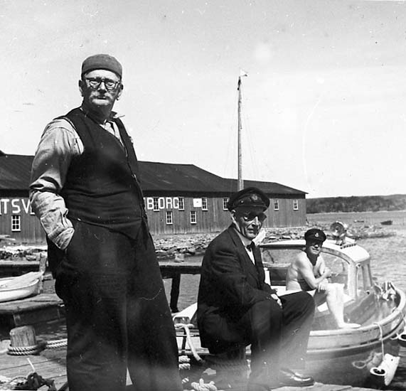 Medföljande text: "Allmags varv, Orust. Bilden troligen från 1950-talet. Originalfoto tillhörande Göran Olsson, Allmag".