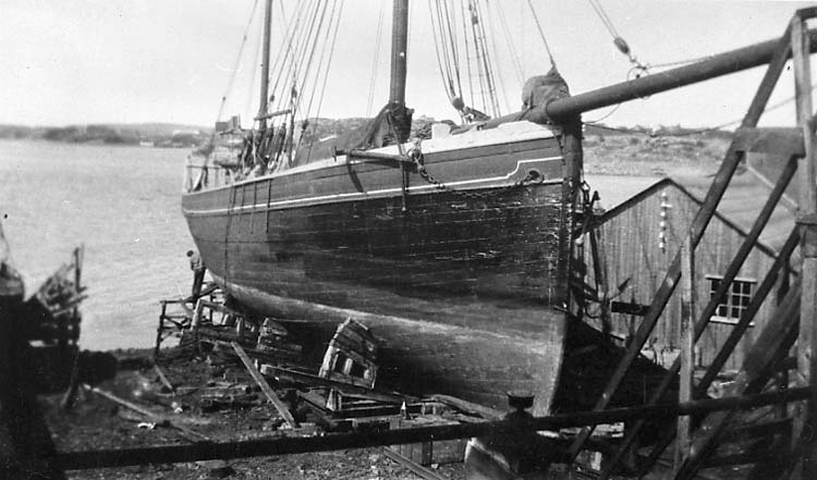 Medföljande text: "Myrens Mekaniska Verkstad, Strömstad. Bilden förmodligen från 1930-talet. Originalfoto tillhörande Allan och Erik Ljungqvist, Strömstad".