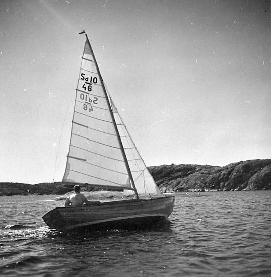 Medföljande text: "Strömstadsjulle, byggd 1943-1947 vid Myrens Mekaniska Verkstad i Strömstad. Originalfoto tillhörande Allan och Erik Ljungqvist, Strömstad".