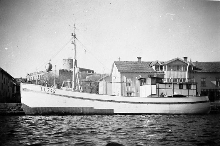 Medföljande text: "Fiskebåten Silvervåg byggd vid Ringens Båtvarv i Marstrand år 1957. Båten såldes till Åstol. Originalfoto tillhörande Jean Dahlström, Marstrand".
