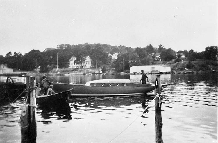 Medföljande text: "Stenungsunds Båtvarv, Stenungsund. På bilden syns en nybyggd kustkryssare. (se även R. 63:4, R. 64:1). Bilden tagen 1946-1947.