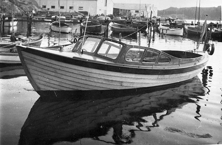 Titel: Medföljande text: "Motorsnäcka (närmast i bild) byggd på slutet av 1940-talet vid Nilssons Båtbyggeri, Strömstad. Originalfoto tillhörande Nils Nilsson, Strömstad".