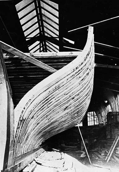 Medföljande text: "Byggnation av fiskebåt (förmodligen Randi byggd år 1965, såld till Fotö) vid Ringens Båtvarv i Marstrand. Spantning. Originalfoto tillhörande Jean Dahlström, Marstrand. Se även R. 77:1, R.78:3, R.78:4, R.80:1, R.80:2, R.80:3, R.80:2, R.81:1, R.81:2, R.81:3, R.81:4, R.82:1, R.82:2, R.92:1, R.92:2, R.92:3, R.92:4, R.93.1, R.93:2, R.93:3, R.93:4".