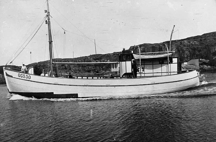 Medföljande text: "Fiskebåten Kasina, byggd 1956 vid Ringens Båtvarv i Marstrand, såld till Hönö. Originalfoto tillhörande Jean Dahlström, Marstrand".