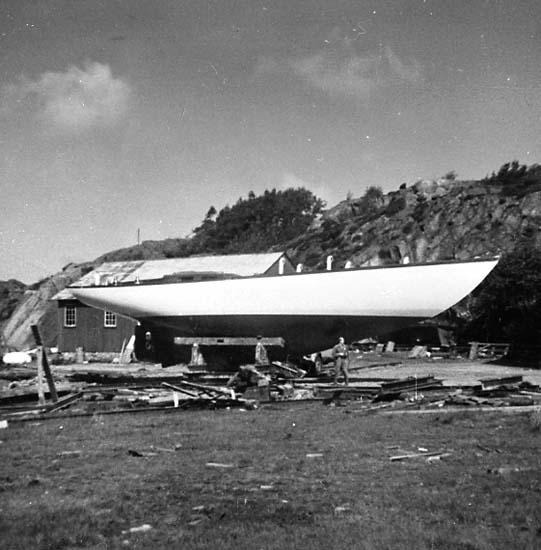 Medföljande text: "Best Luck (19,5 m, 34 ton) vid Bröderna Jacobssons Båtbyggeri Källviken, Dragsmark. Bilden tagen 1968. Originalfoto tillhörande Nils Jacobsson, Källviken. Se även R.87:1, R.87:2, R.88:3".