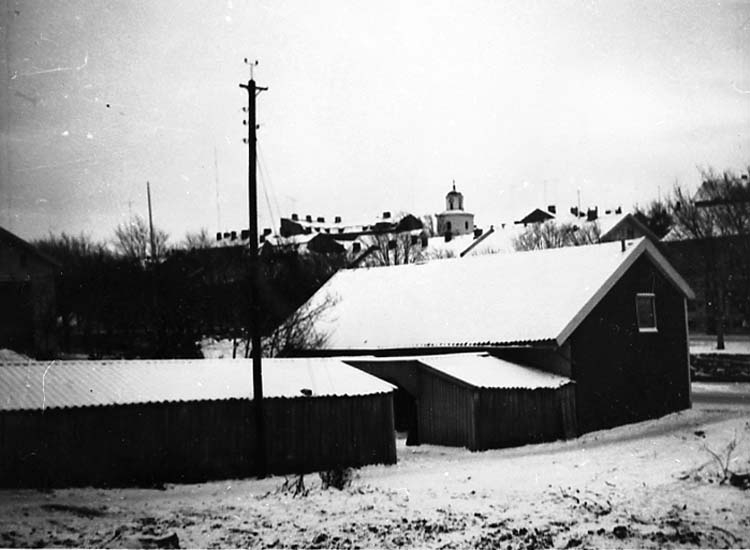 Medföljande text: "Äldre sjöbod och magasin på norra sidan av Strömsån i Strömstad (numera riven). Originalfoto från Sven Baatz, Strömstad".