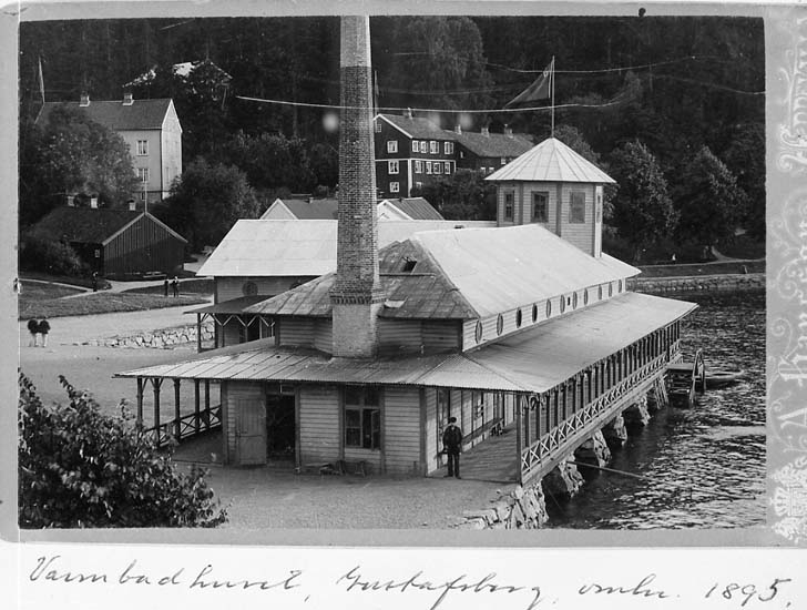 Medföljande text: "Varmbadhuset, Gustafsberg omkring 1895".