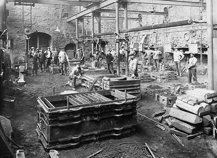 Medföljande text: "Partille sn, Jonsereds fabriker. Interiör av gjuteriet före 1920. Kulturnämndens arkiv nr -75, 26:3".