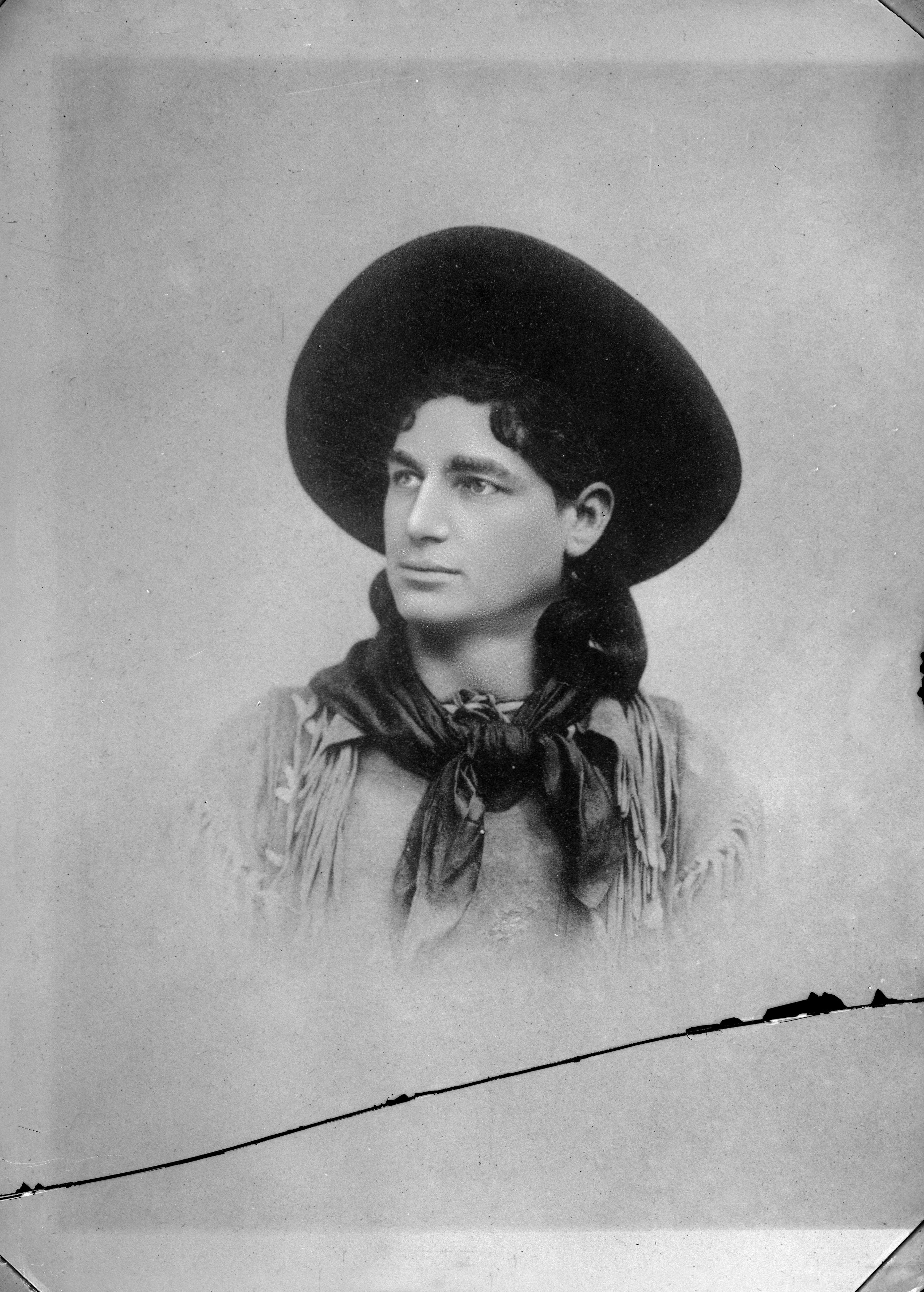 Porträtt i halvfigur av John Baker "Texas Jack" Omohundro, Jr., iklädd cowboyhatt.