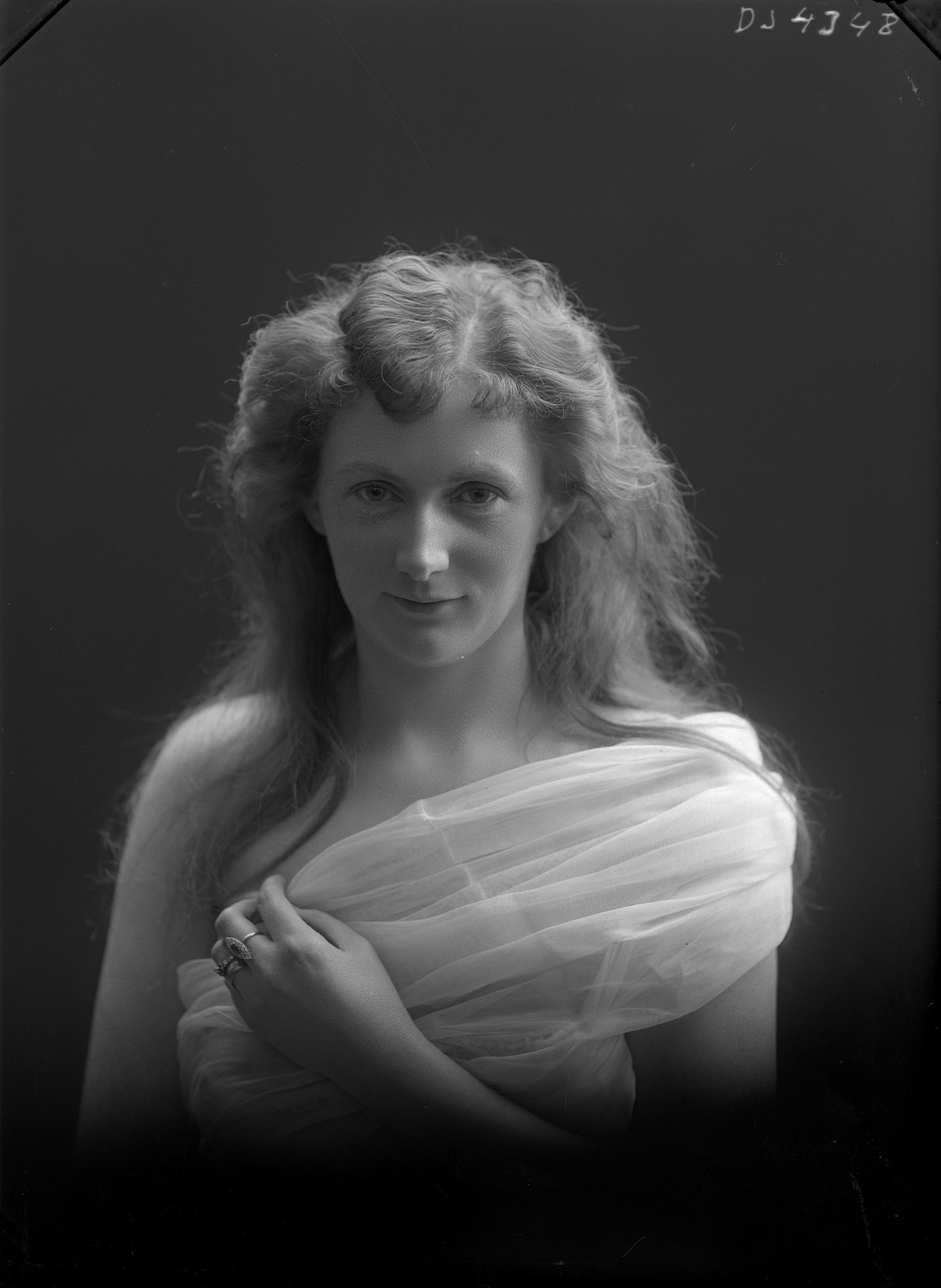 Beskrivning: Porträtt i halvfigur av Hulda Nilsson eller fröken Brundin. [?]