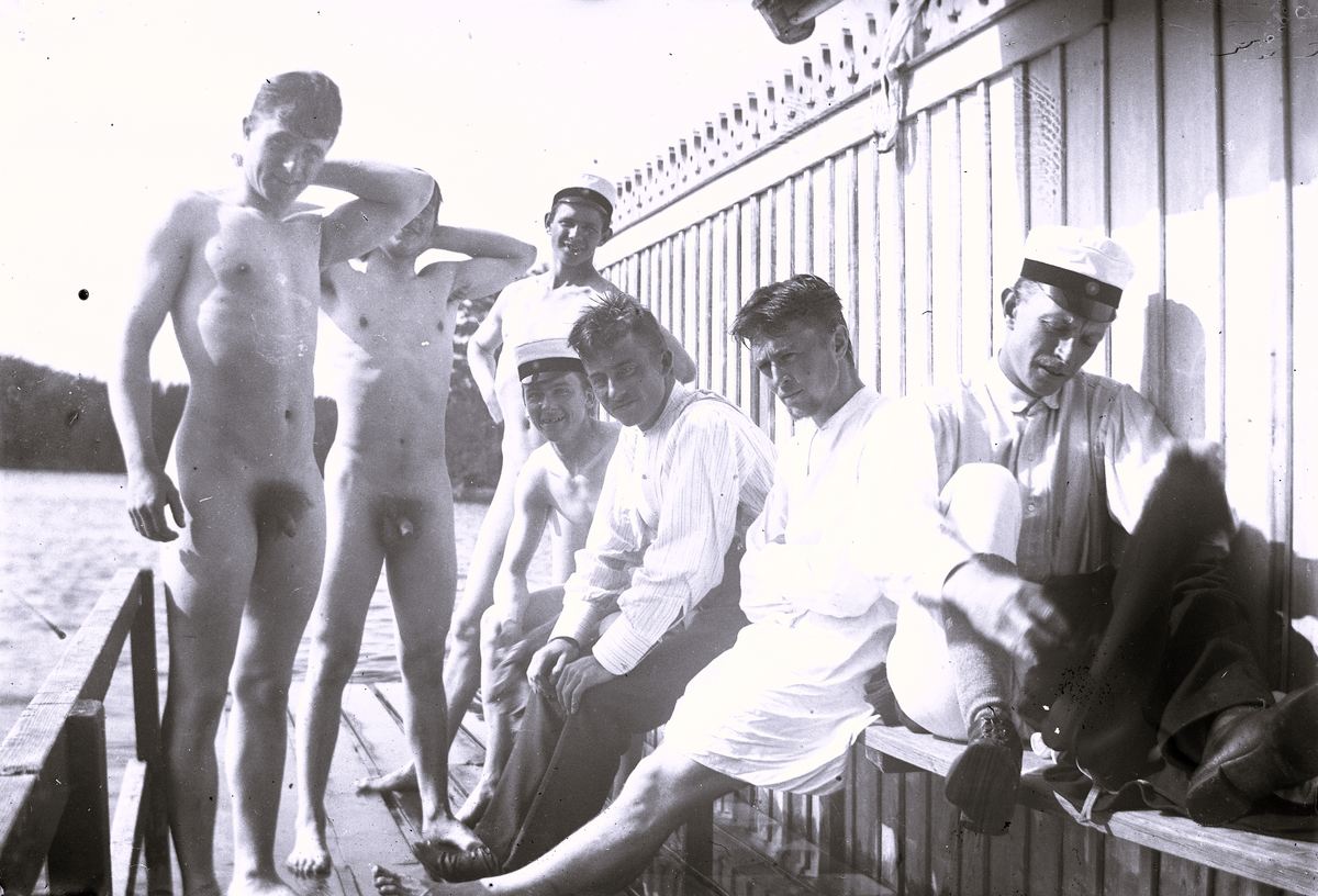 Unga män vid badhus