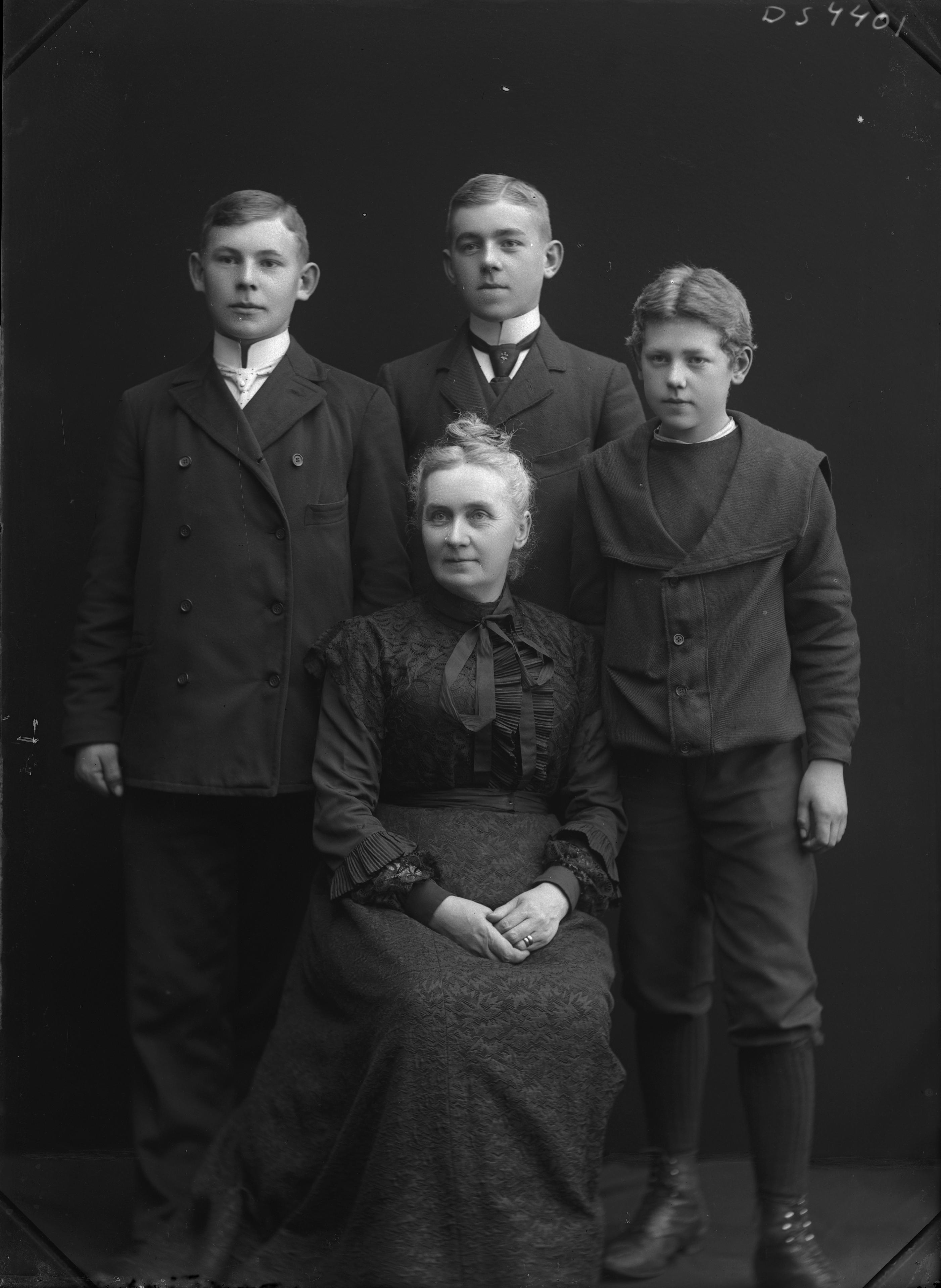 Beskrivning: Fru Charlotta Ekberg + tre barn Tegelgårdsgatan