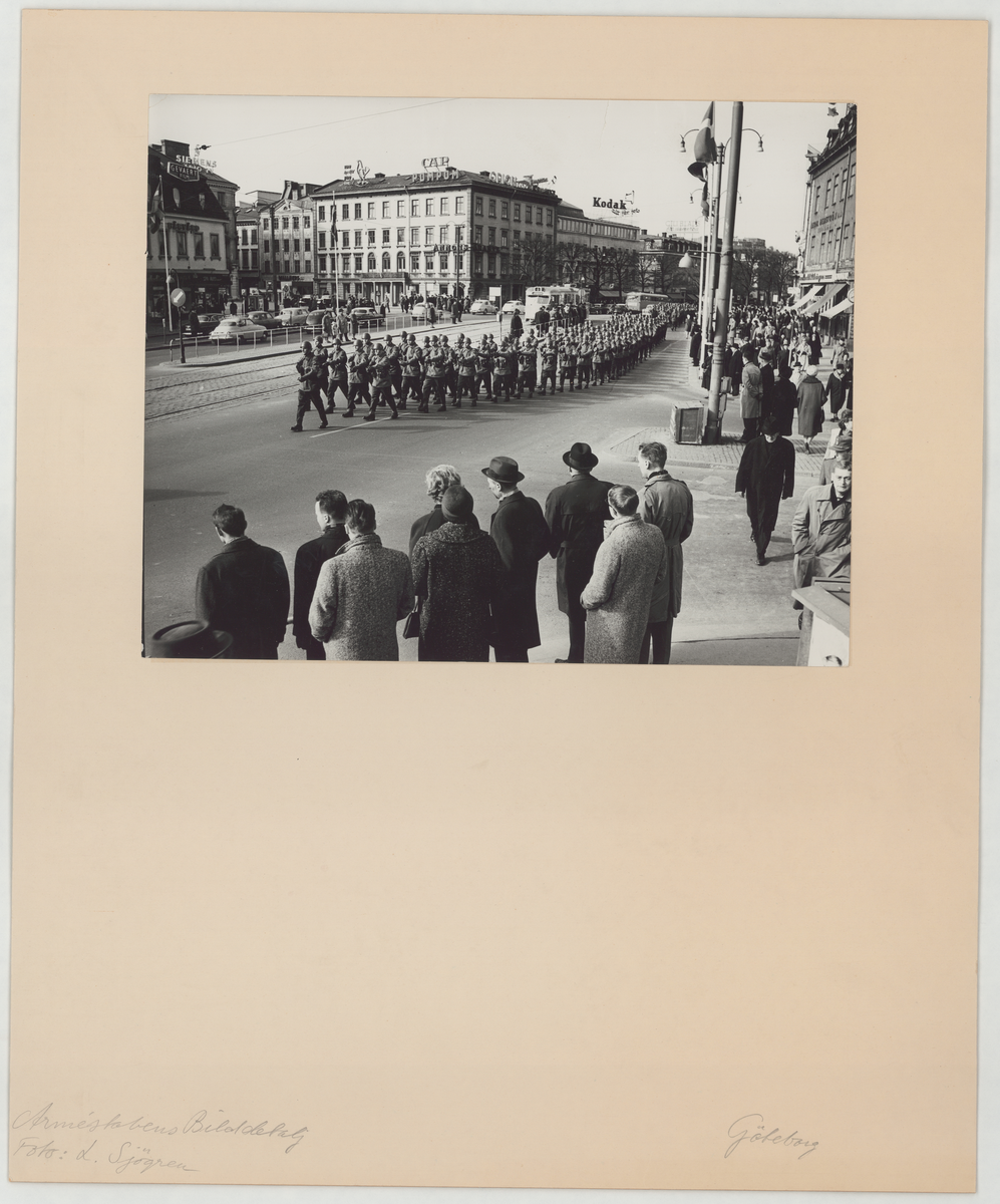 Trupp marscherar i Göteborg, 1960-tal.