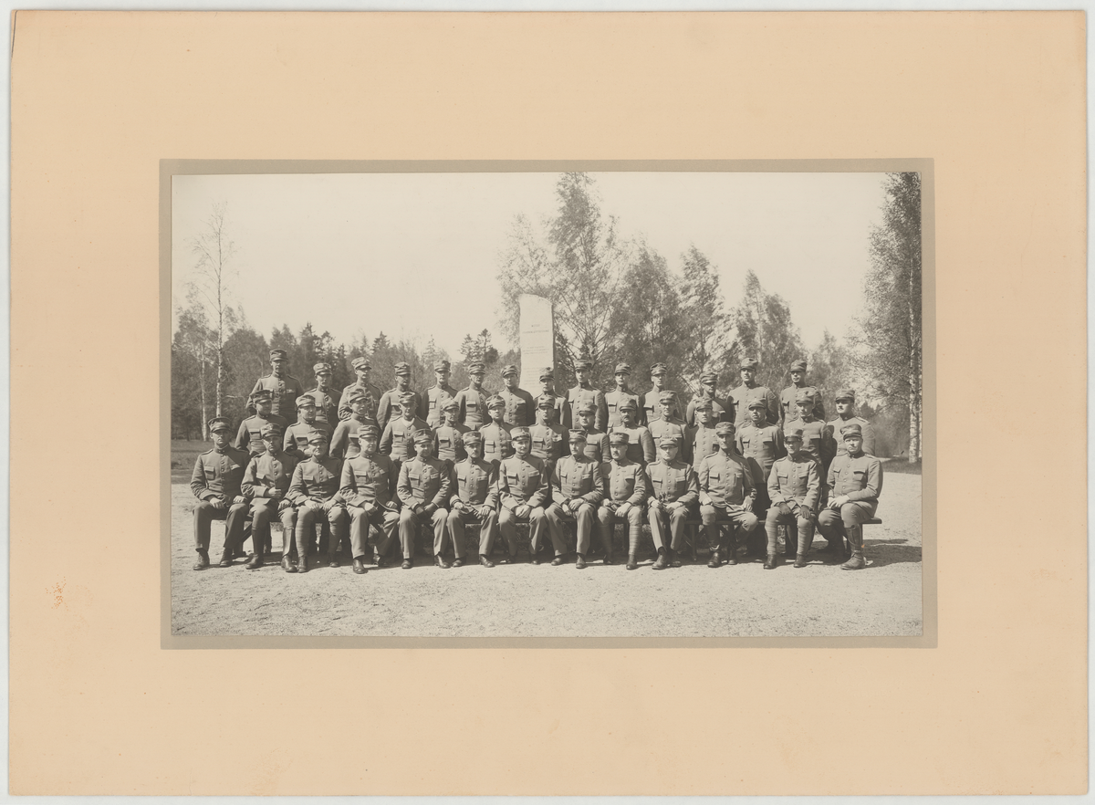 Hälsinge regemente I 14, gruppfoto på officerare vid minnessten.