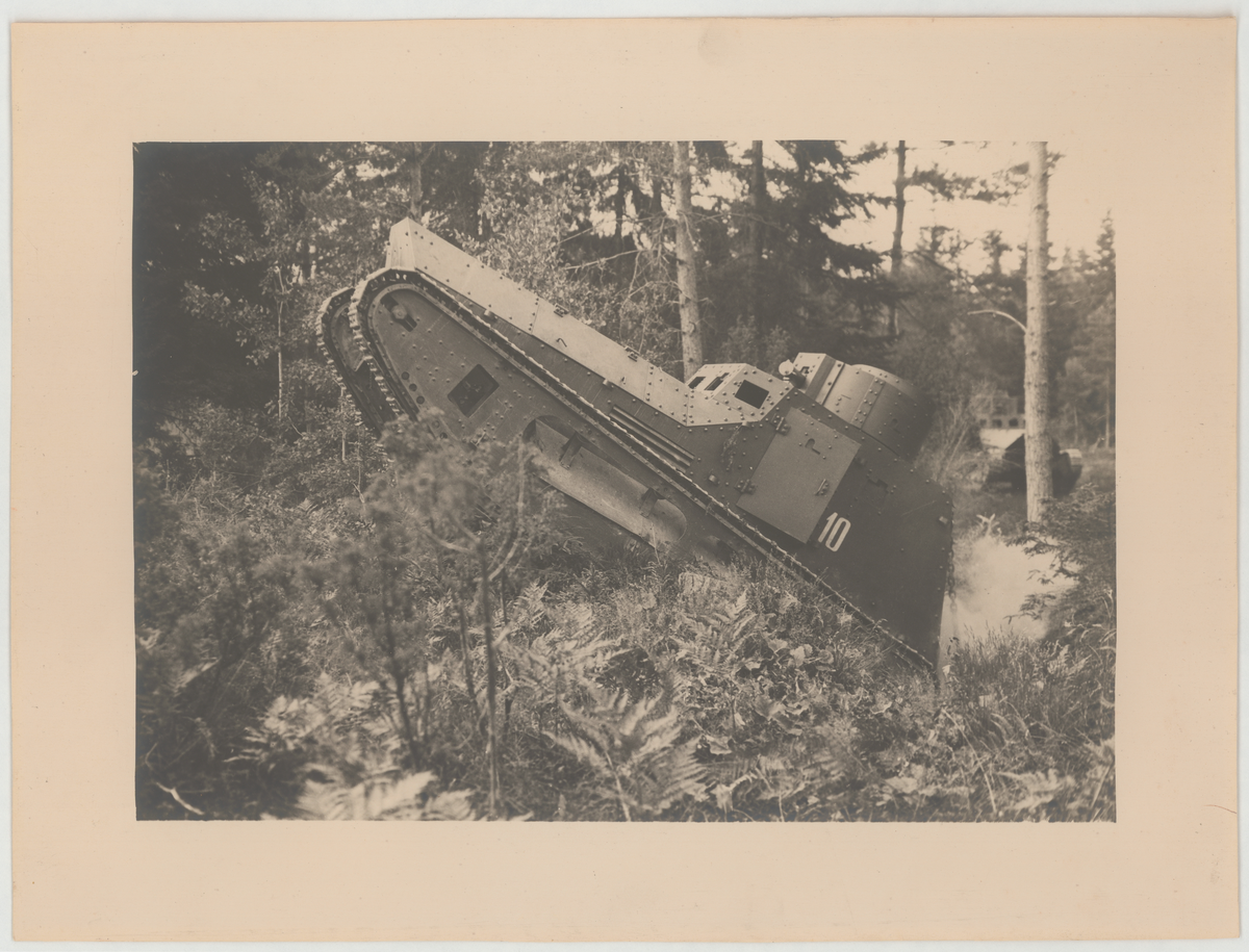 Titel: Två stridsvagnar m/1921 i skogsterräng.