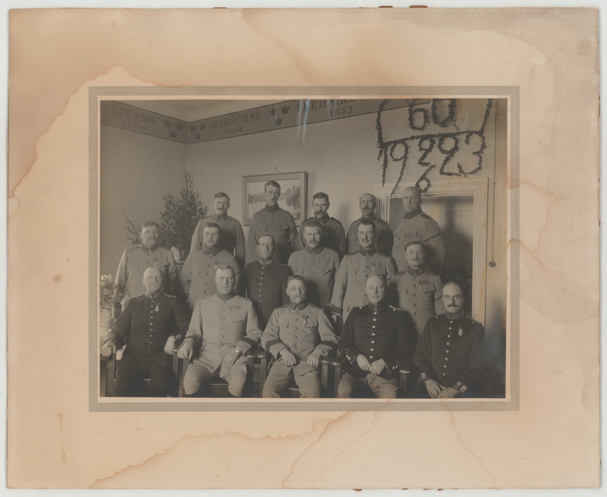 Titel: Hälsinge regemente (I 14). Gruppfoto med officerare.