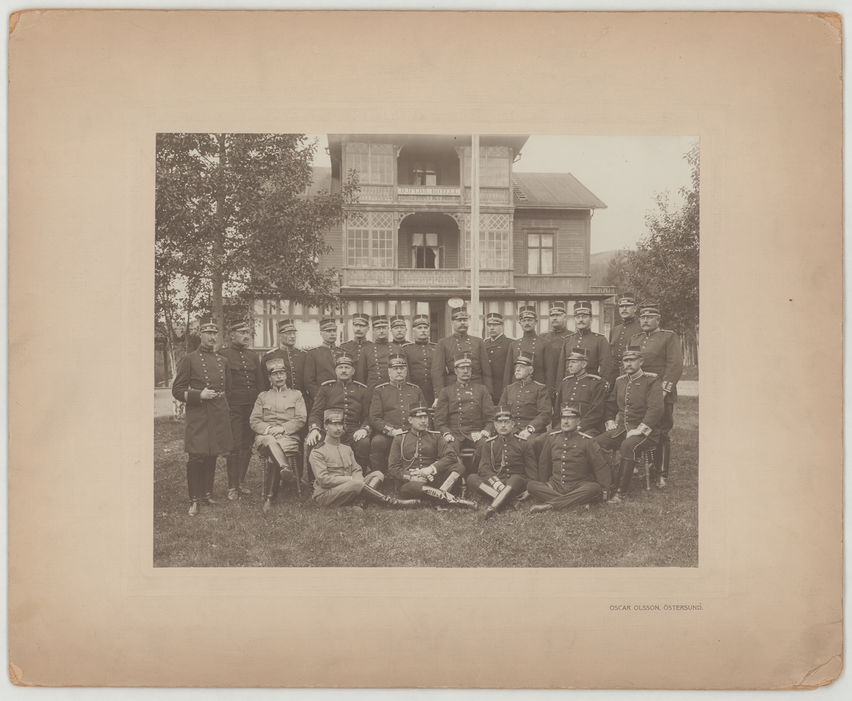 Gruppfoto framför ett trähus.