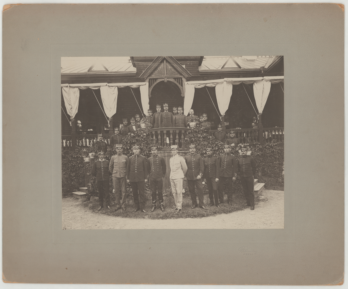 Titel: Gruppfoto vid officersmässpaviljongen.