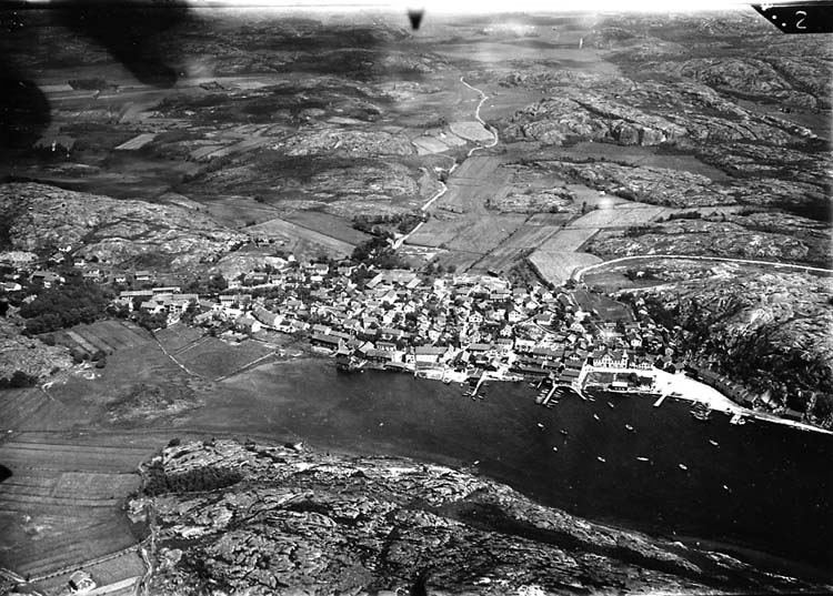 Medföljande text: "Vy över Grebbestad 1927. F Oscar Bladh".