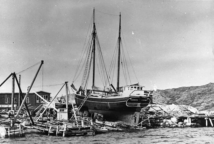 Medföljande text: "Holmuddens varv, Lyresund, Orust. Taget på 1950-talet. Bildlån från Ingrid Samuelsson, Ellös".