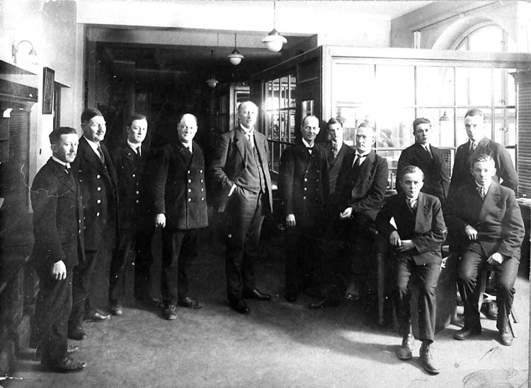 Medföljande text: "Kansli- kassapersonal vid postkontoret i Uddevalla i slutet av 20-talet. Uddevalla postkontorhistorik sedan början av 1800-talet".
