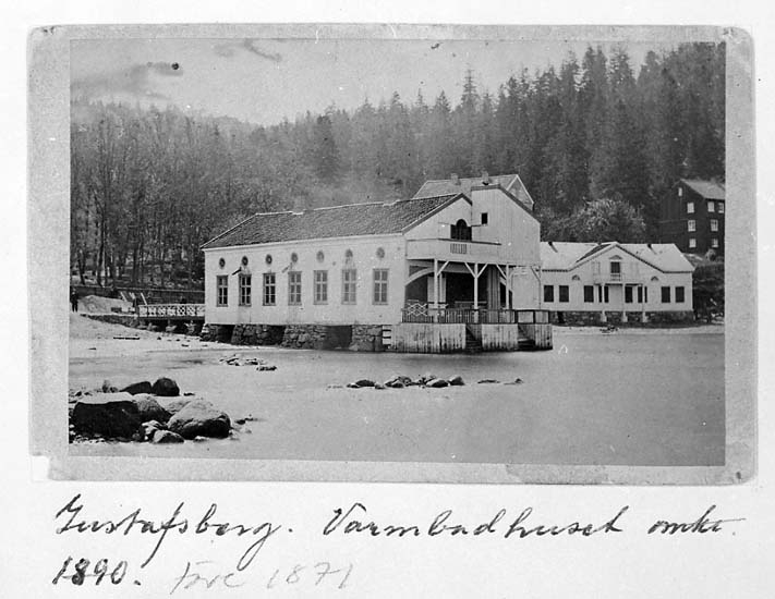 Medföljande text: "Gustafsberg, varmbadhuset cirka 1890".